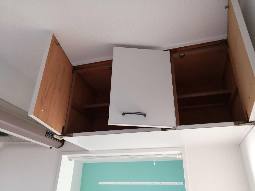 【収納】 キッチンの吊戸棚収納です。お掃除用品や食品などしまっておけますね