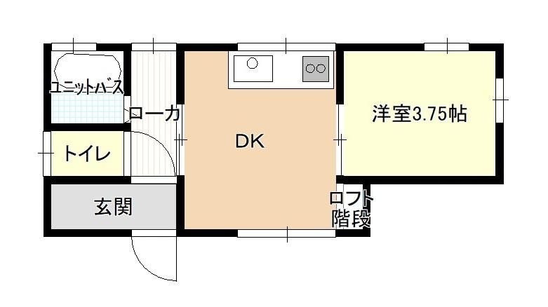 1DK ( 洋室3.75畳(1階) )