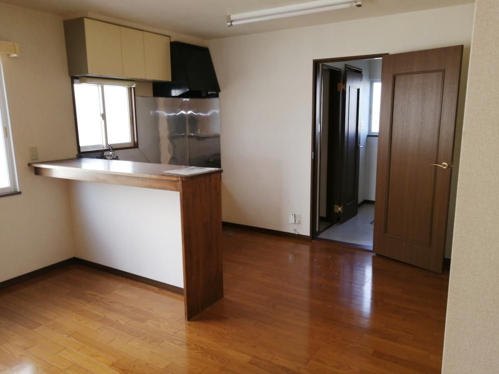 【居間・リビング】 13帖LDK。キッチンカウンターがあって便利です。