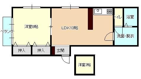 間取り 1LDK ( LDK13畳(2階)/洋室8畳(2階) )