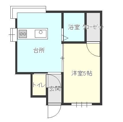 1DK、シングル向け。DKなので、台所がちょっと広め