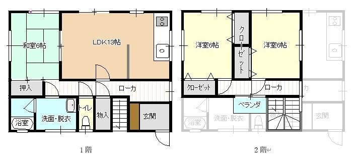 1993年1月築の2階建ての一戸建てで、お部屋は2階建ての-部分です。
