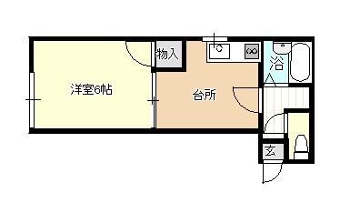 間取り 1K ( 洋室6畳(2階) )