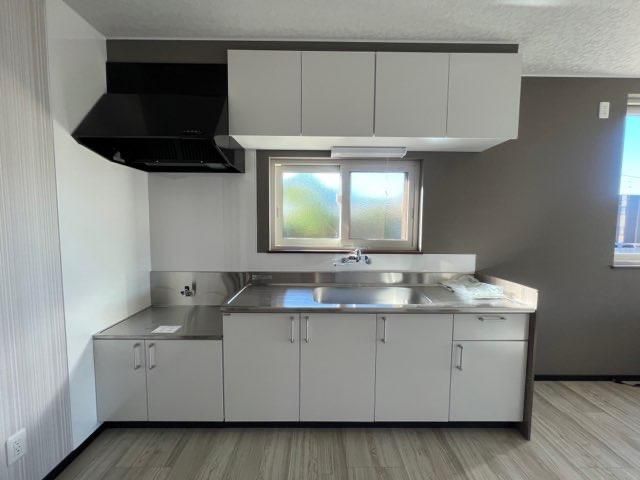 弘前市亀甲町の賃貸アパート★2022年9月築の南西向き1LDKの新築★駐車2台可能弘前公園エリア★14帖のLDKに10帖の洋室の1LDKです。南西向きで明るく、大きな窓があり風通しも良いです。ストーブ、エアコン付きで、収納も多め。灯油ボイラーのため経済的です。広々としたシステムキッチン、モニター付きインターフォン、室内換気扇あり。2022年9月築の新築で駐車2台可能です。