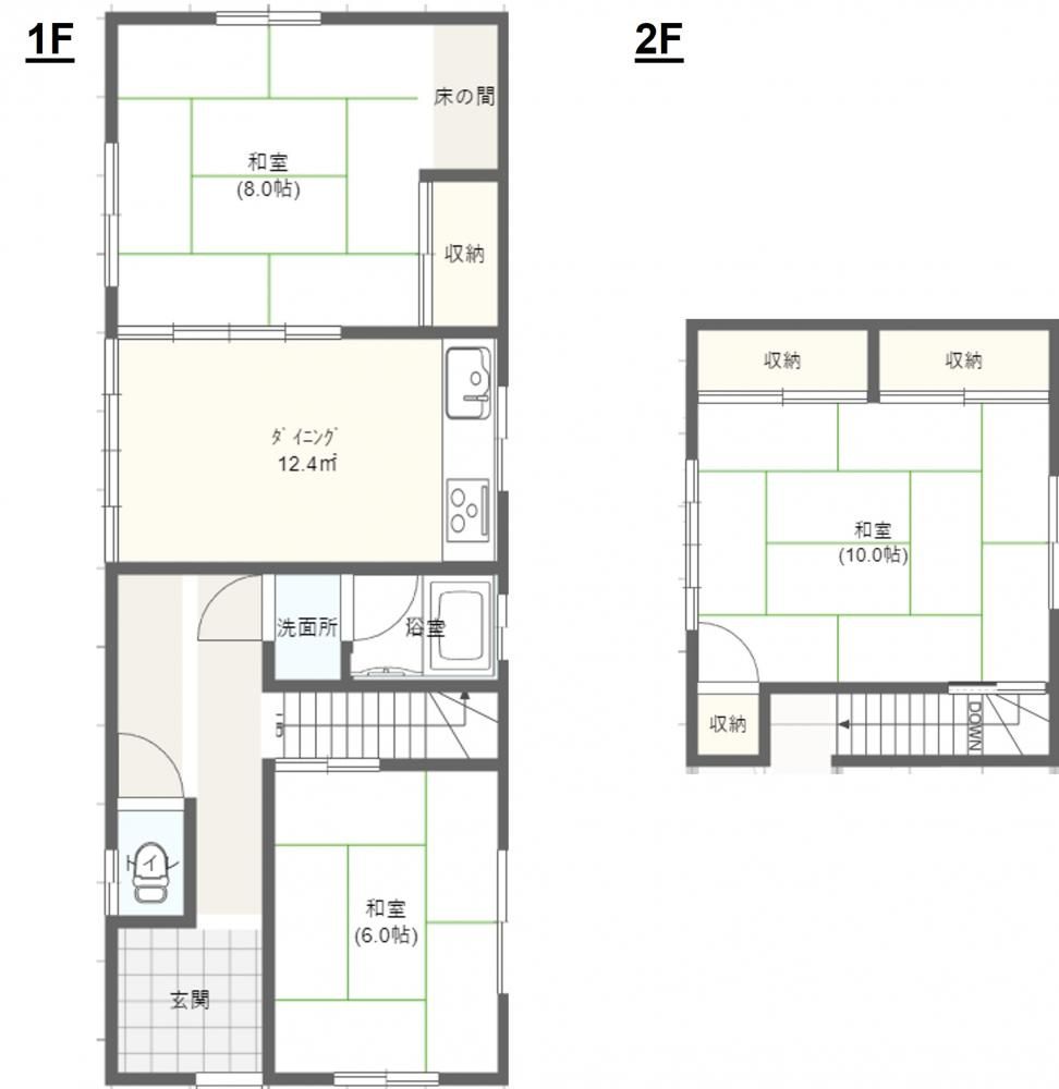 3DK ( DK6.8畳(1階)/和室8畳(1階)/和室6畳(1階)/和室10畳(2階) )