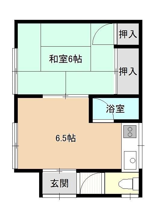 1DK ( 和室6畳(1階)/DK6.5畳(1階) )
