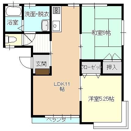 2LDK ( LDK11畳/和室6畳/洋室5.25畳 )