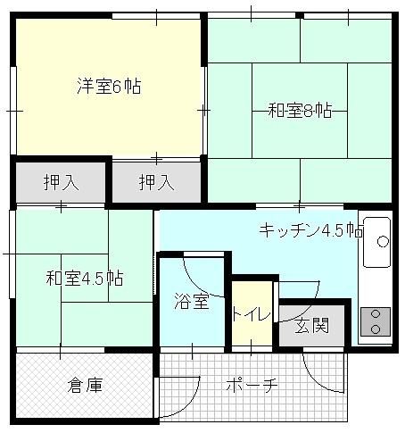 3K ( K4.5畳(1階)/和室8畳(1階)/洋室6畳(1階)/和室4.5畳(1階) )
