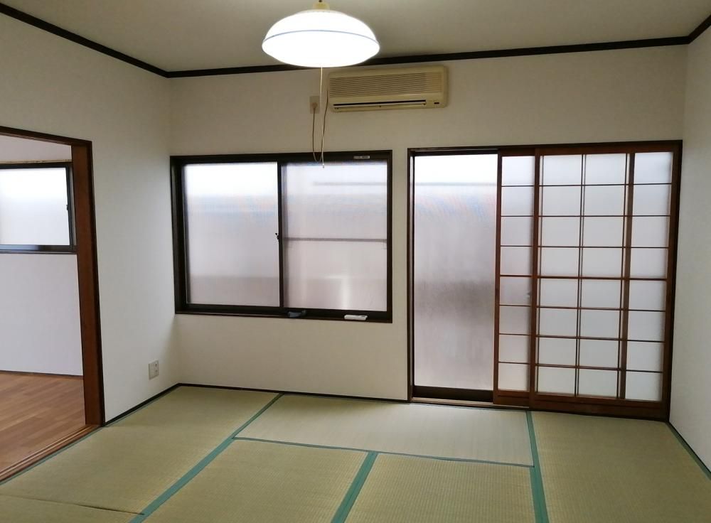 松葉町にある平屋アパート。バス停徒歩5分!1~2人向け。洋室が1部屋、和室が2部屋あるので客間・寝室といった使い分けができます。バストイレ別。倉庫つき!